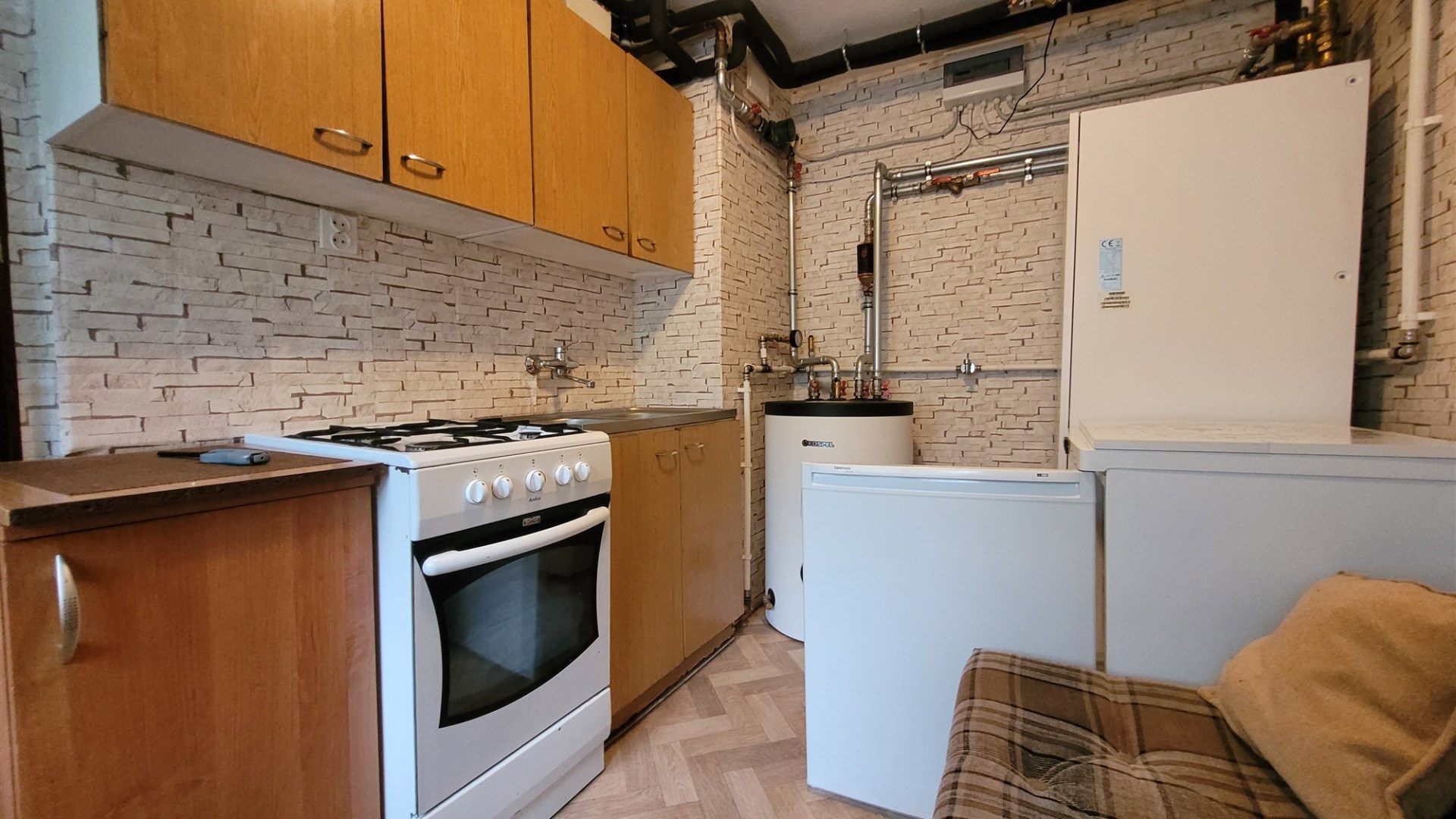 Pierwsza część (do generalnego remontu): kuchnia, łazienka, pokój oraz korytarz,