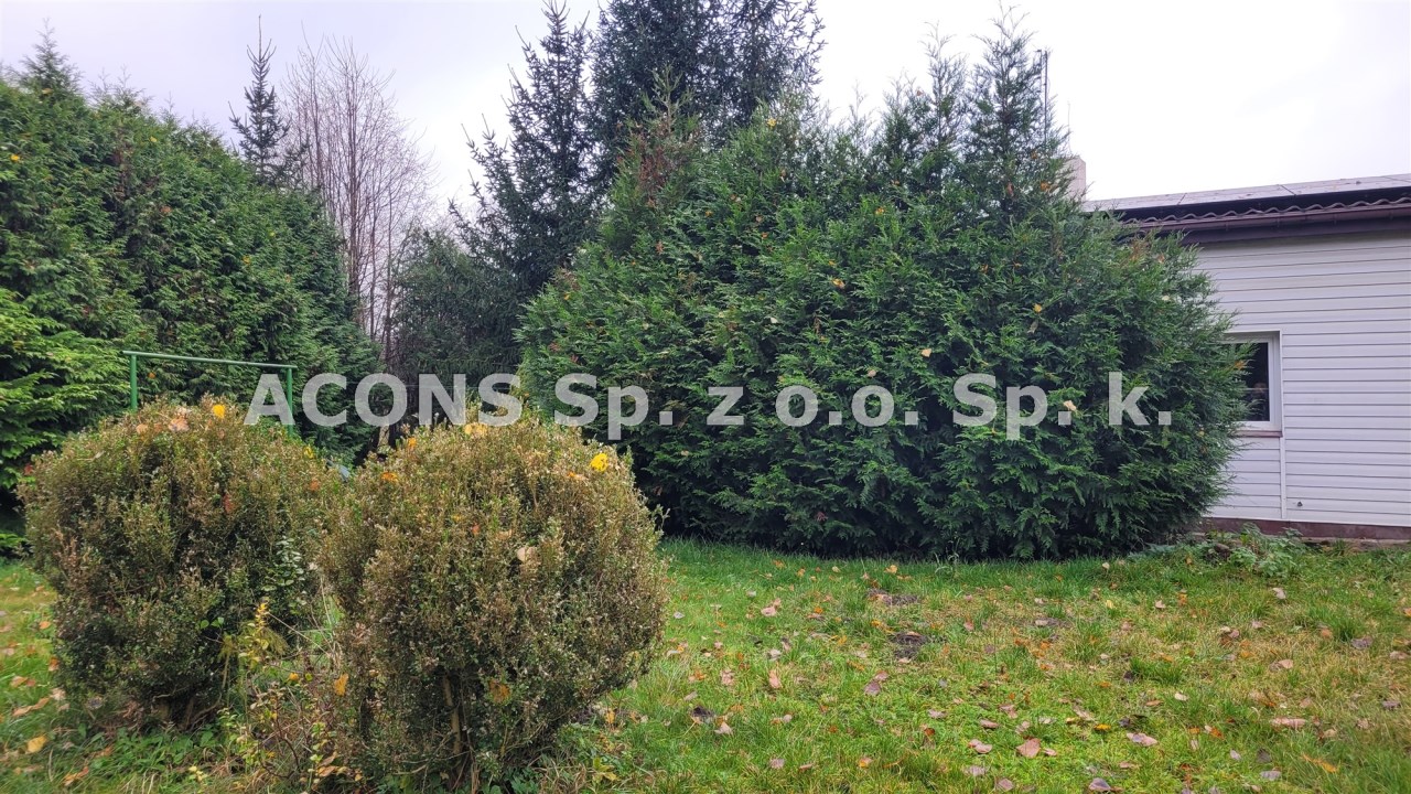 Nieruchomość znajduje się na dużej, ładnej działce o powierzchni 869 m², w kształcie prostokąta. Teren jest zielony, obsadzony tujami, które zapewniają prywatność oraz przyjemny klimat do wypoczynku.