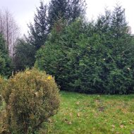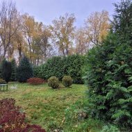 Wokół liczne nasadzenia, w tym wysokie tuje zapewniające prywatność,
